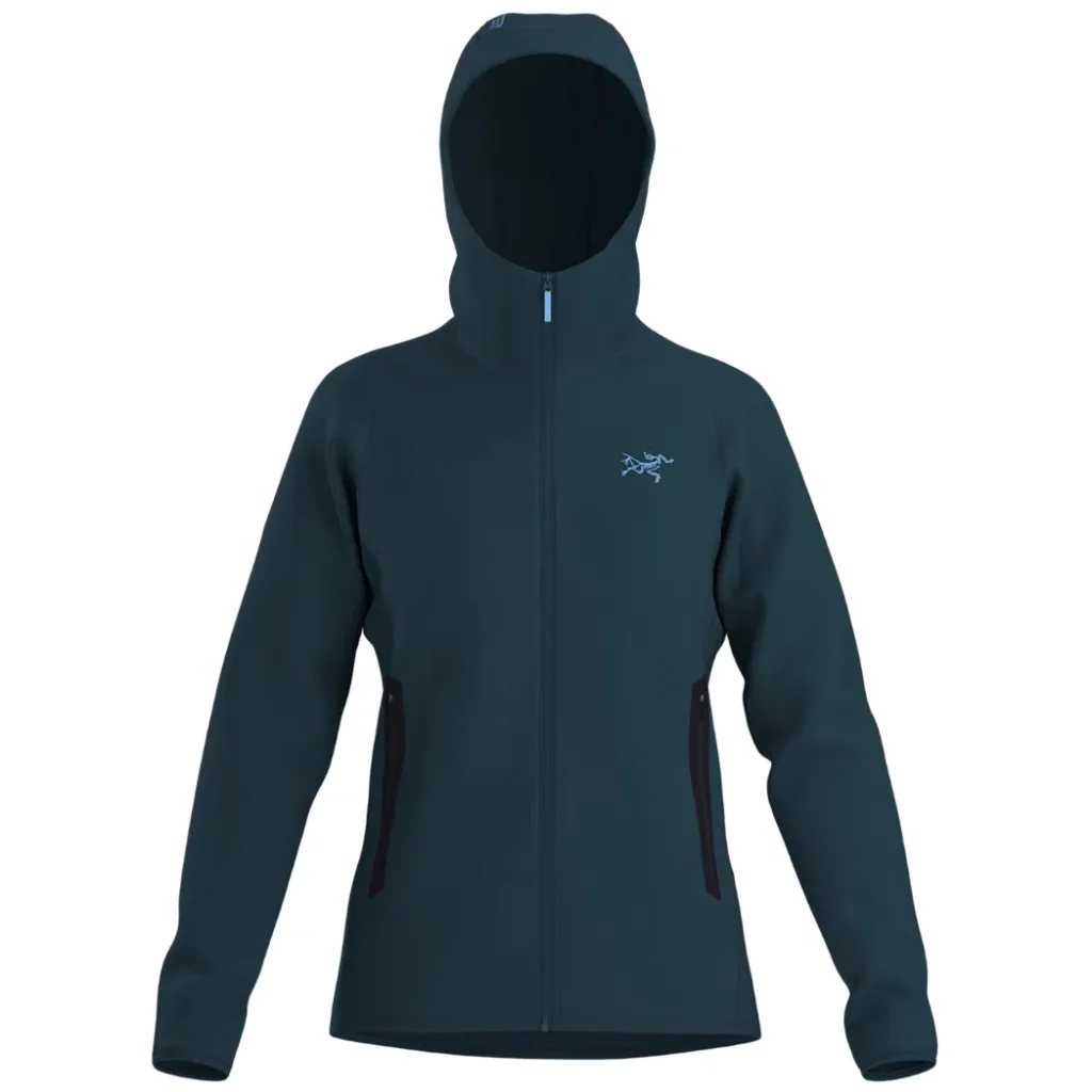 Veste polaire technique femme, la Kyanite Hoody femme Midnight Frost d’ARC’TERYX offre chaleur, respirabilité et liberté de mouvement grâce à sa construction stretch 4-sens.