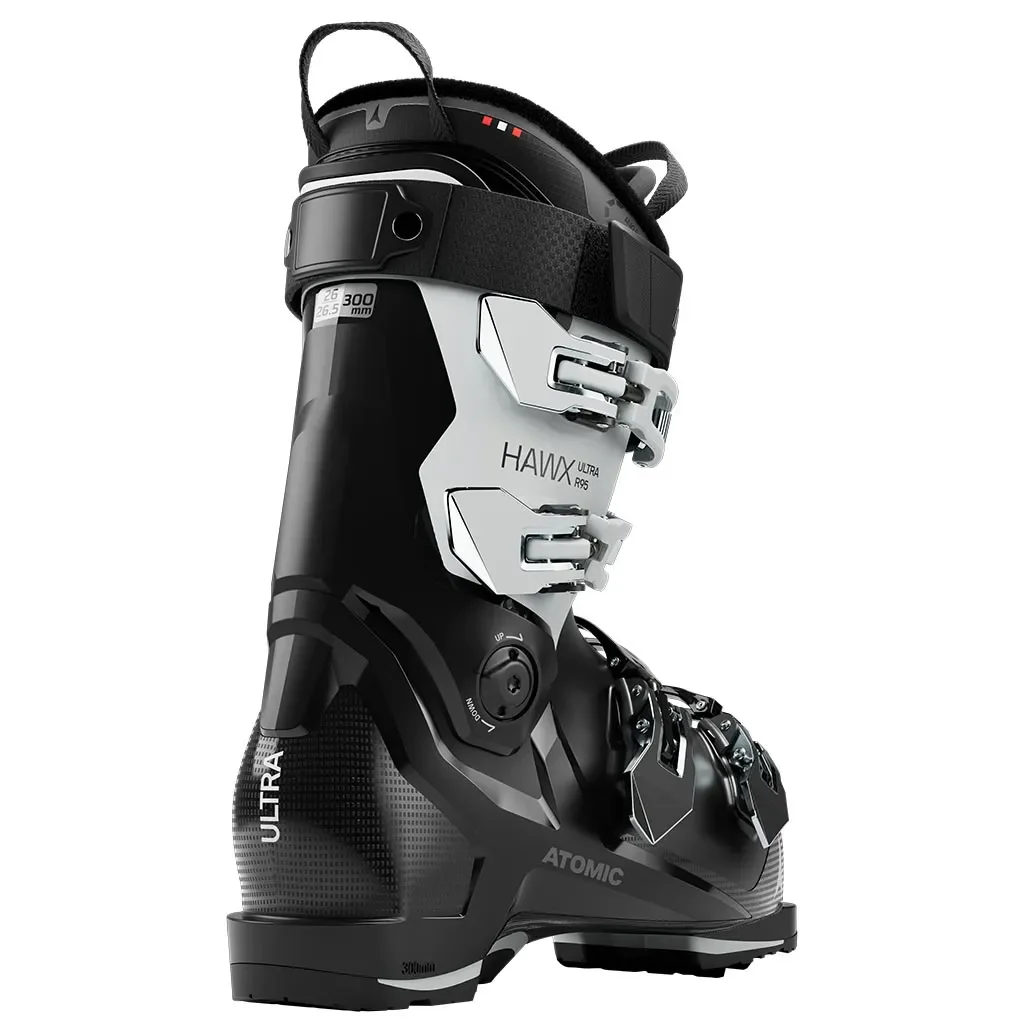 L’Atomic Hawx Ultra R95 W black ice est une chaussure de ski alpine femme performante, légère et parfaitement adaptée aux pieds fins, idéale pour un ski all