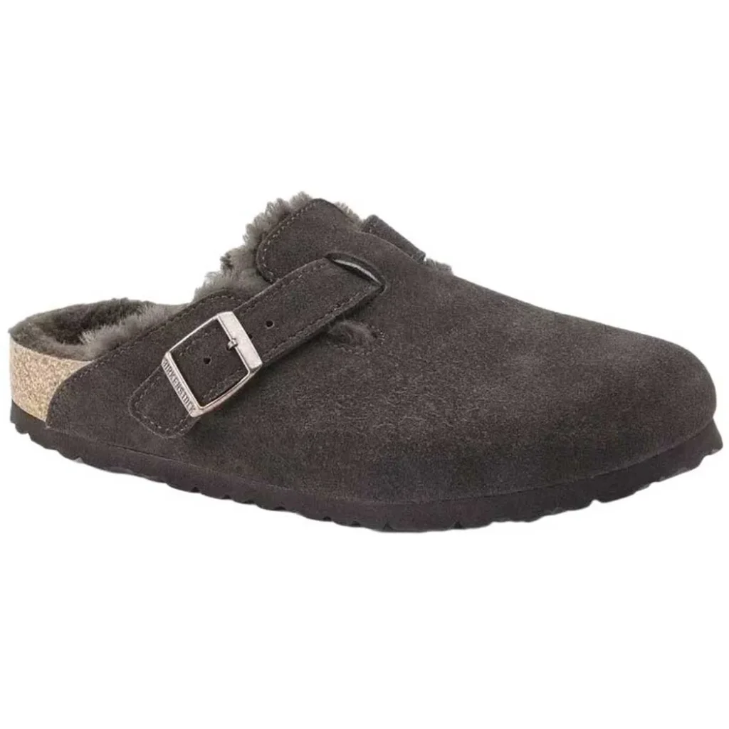 Le sabot homme BIRKENSTOCK Boston Shearling Suede – Mocca (Regular) allie confort thermique et maintien optimal grâce à sa doublure en fourrure d'agneau naturelle.