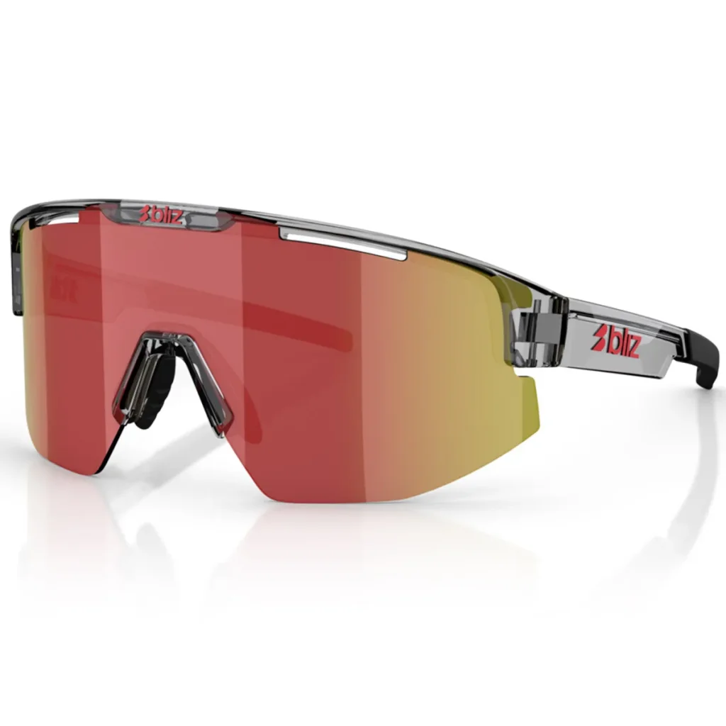 La BLIZ Matrix gris foncé transparent / rouge est une lunette de sport haute performance conçue pour offrir un champ de vision élargi et une protection optimale.