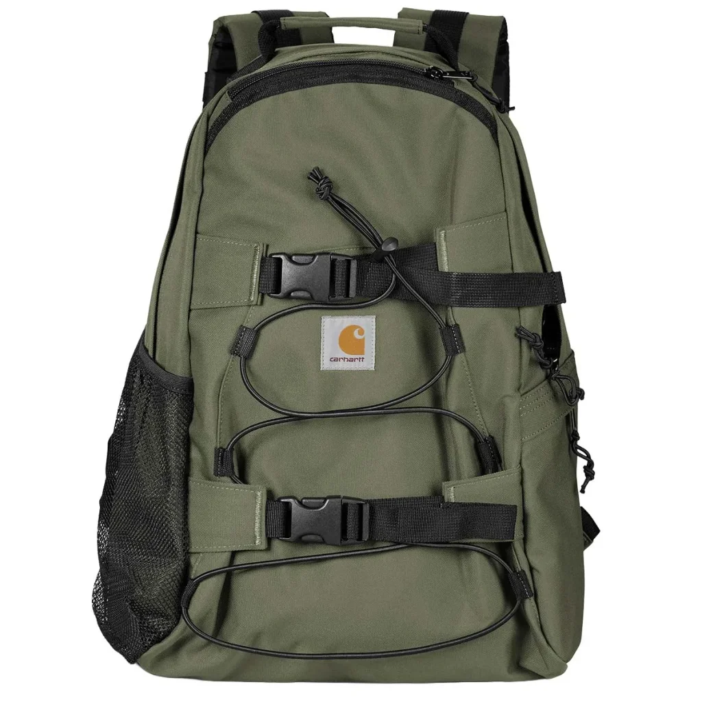 Le Carhartt WIP Kickflip Backpack est un sac à dos utilitaire robuste, conçu pour un usage intensif et polyvalent, particulièrement adapté au transport d'équipements grâce à ses fixations extérieures.
