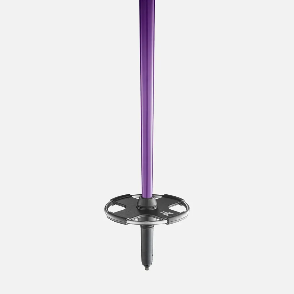 - Panier interchangeables : rondelles Powder + All‑Mountain, faciles à clipser selon la neige