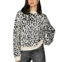 - Détails : motif jacquard léopard, col rond, bords-côtes au bas et aux poignets.