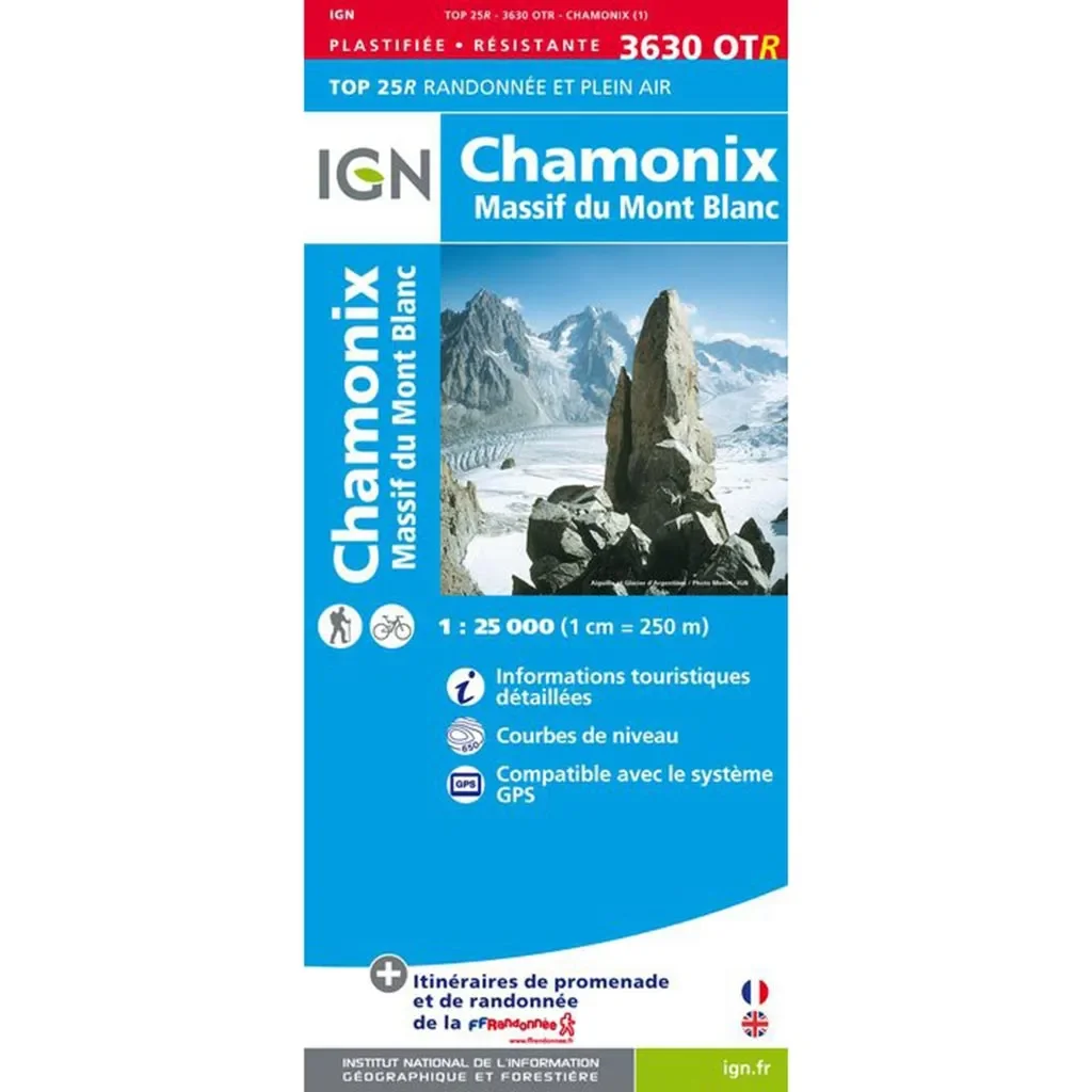 Pour vos randonnées aux alentours de Chamonix et du Massif du Mont-Blanc cette carte est indispensable. Vous apprécierez son échelle à 1:25 000.