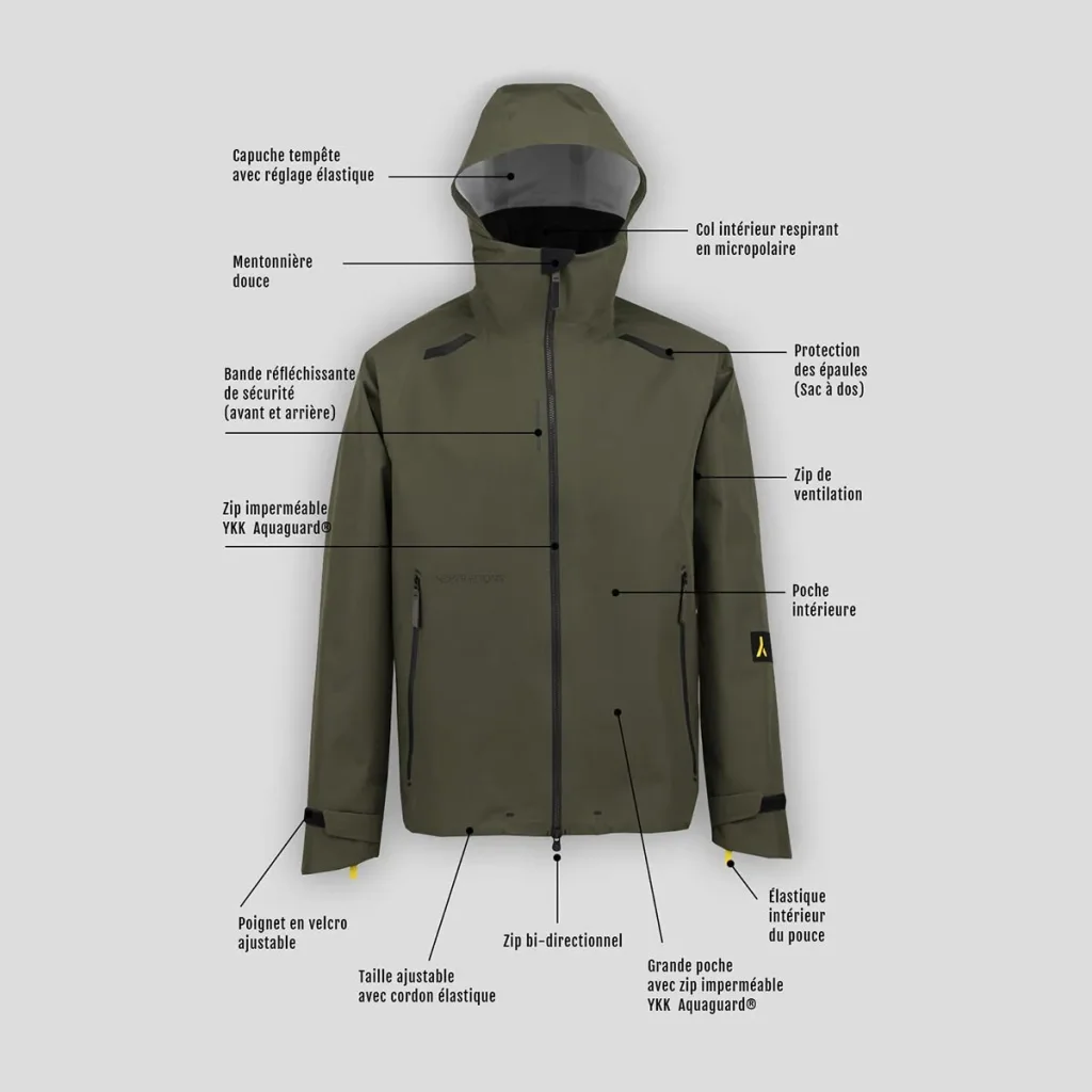 - Construction 3 Couches (3L) : Un assemblage robuste et durable qui protège des conditions les plus rudes (vent, neige, givre).
