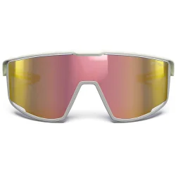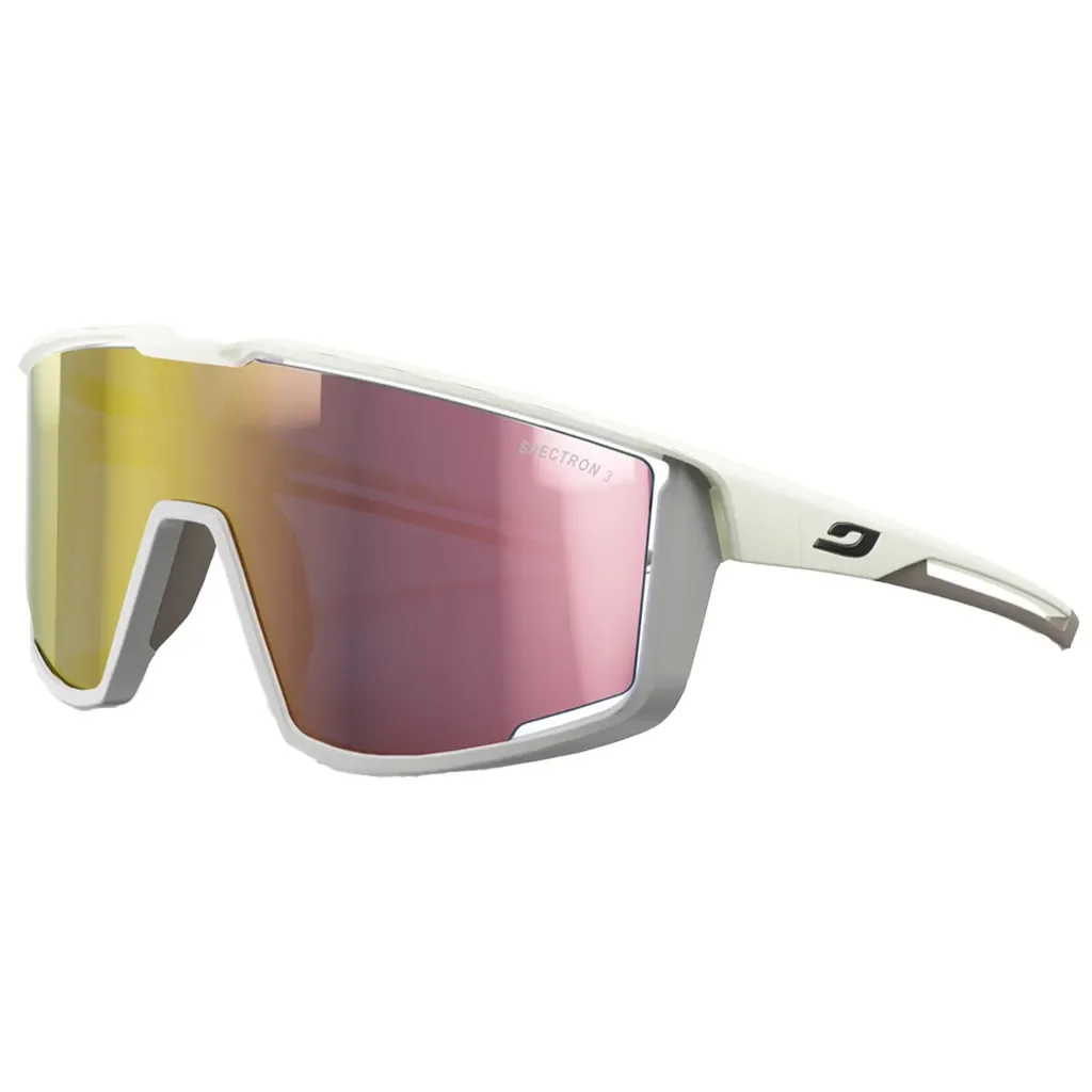 Les lunettes Julbo Fury en coloris beige et marron, équipées de verres Spectron 3 CF or, sont conçues pour les activités sportives rapides telles que le cyclisme et le trail.