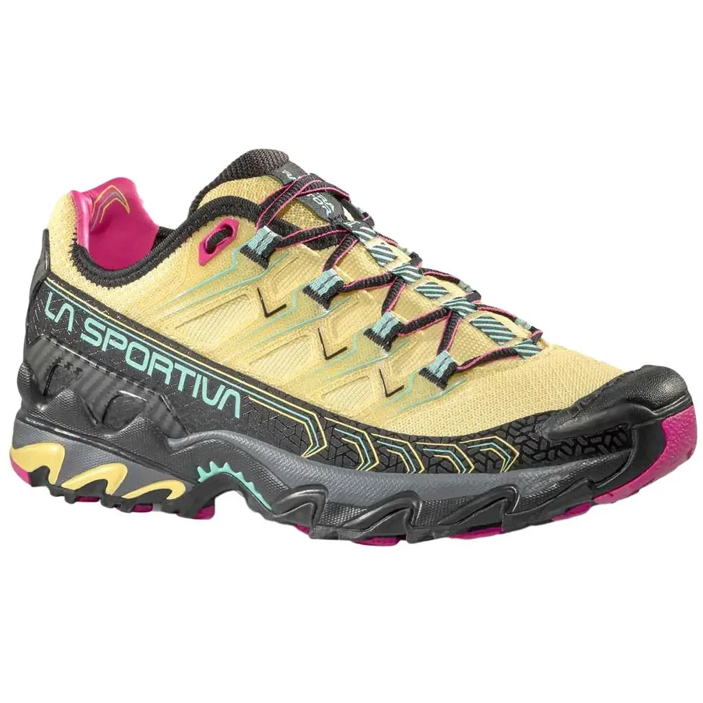 Cette chaussure de trail emblématique La Sportiva Ultra Raptor II pour femme est conçue pour les longues distances sur terrains techniques, combinant stabilité, maintien et adhérence avec un confort longue durée.