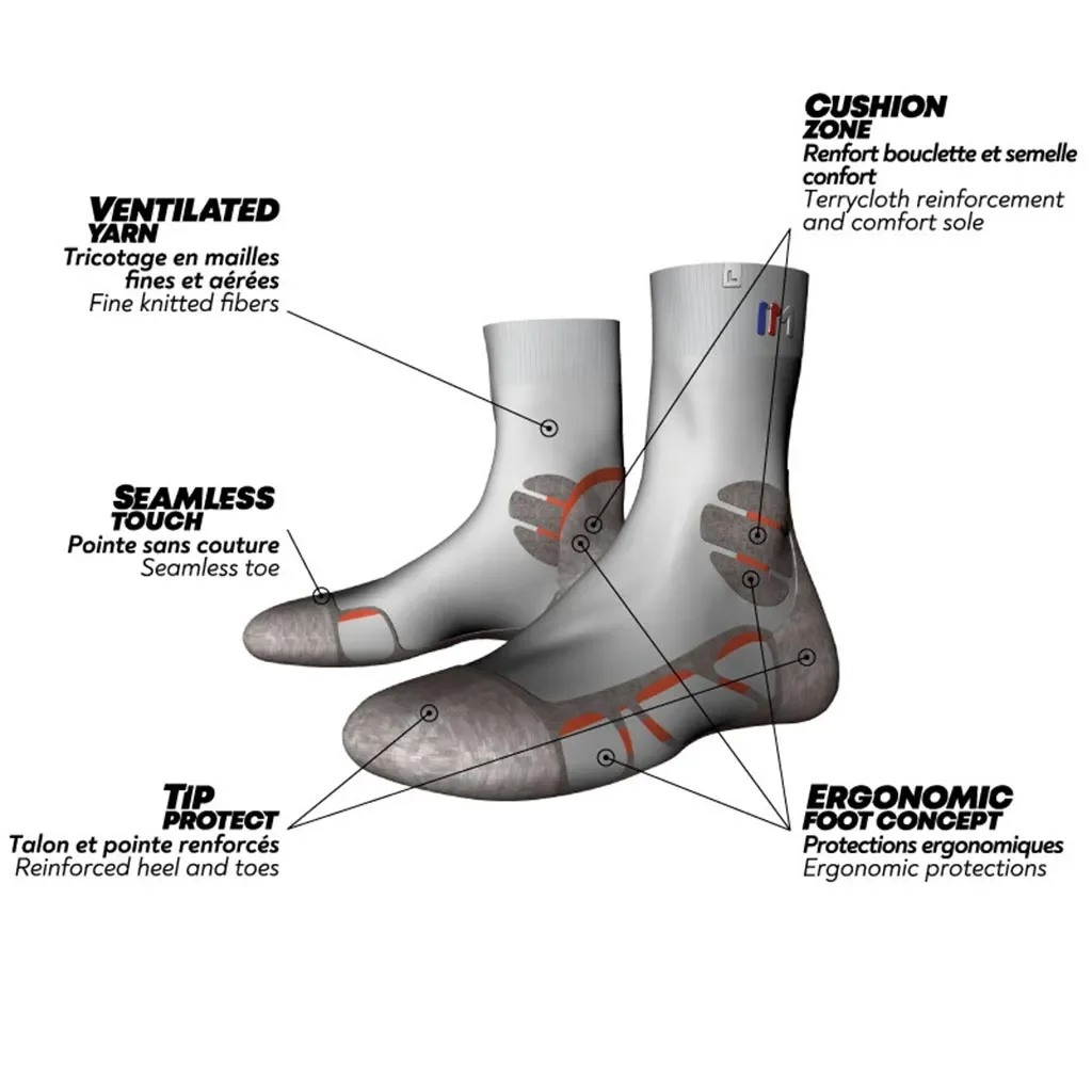 Parfaite pour les aventures estivales en trek, cette chaussette en lin garantit une évacuation optimale de la transpiration, procurant fraîcheur et confort à vos pieds, idéalement adaptée aux chaussures mi-hautes ("mid").