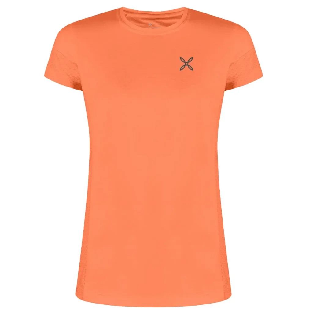Le t-shirt Montura Delta Mix pour femme en orange est un haut technique pour femme, idéal pour les activités estivales en plein air telles que la randonnée, le trekking ou les voyages.