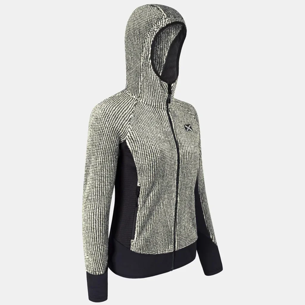Cette veste Montura est une polaire légère et isolante avec capuche, conçue pour réguler la température pendant les activités outdoor.