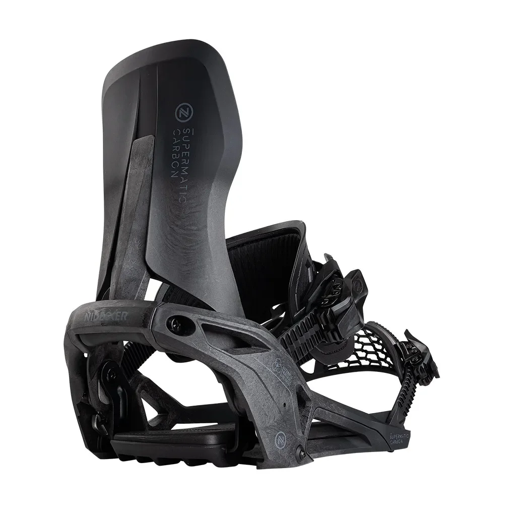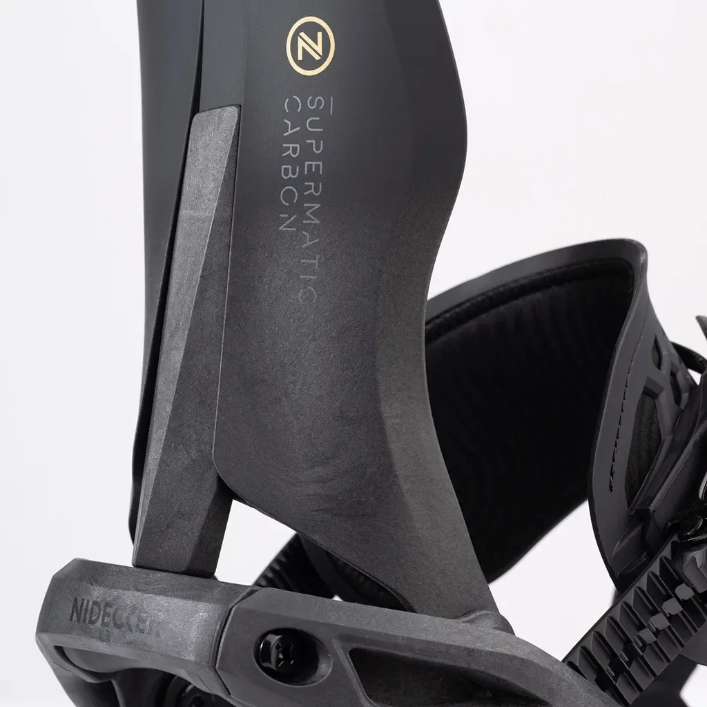 La fixation Nidecker Supermatic Carbon est une version plus réactive et dynamique que la Supermatic Classique. Elle permet une conduite plus dynamique tout en ayant un bon transfert de puissance et un contrôle hors du commun.