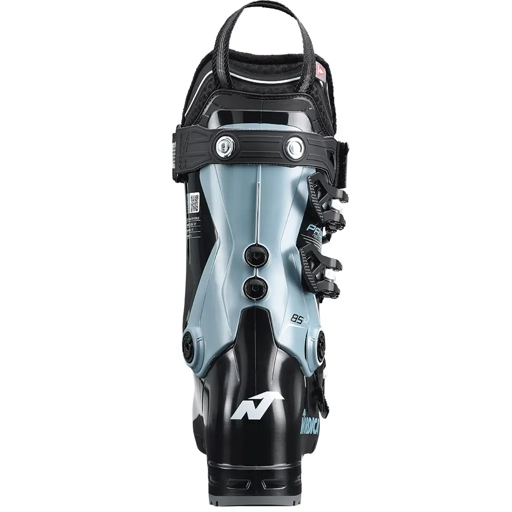 Chaussure ski femme avec flex 85 accessible, chaussant étroit, chausson isolant Primaloft®, coque légère Tri-Force, et semelle GripWalk pour plus de stabilité à la marche.