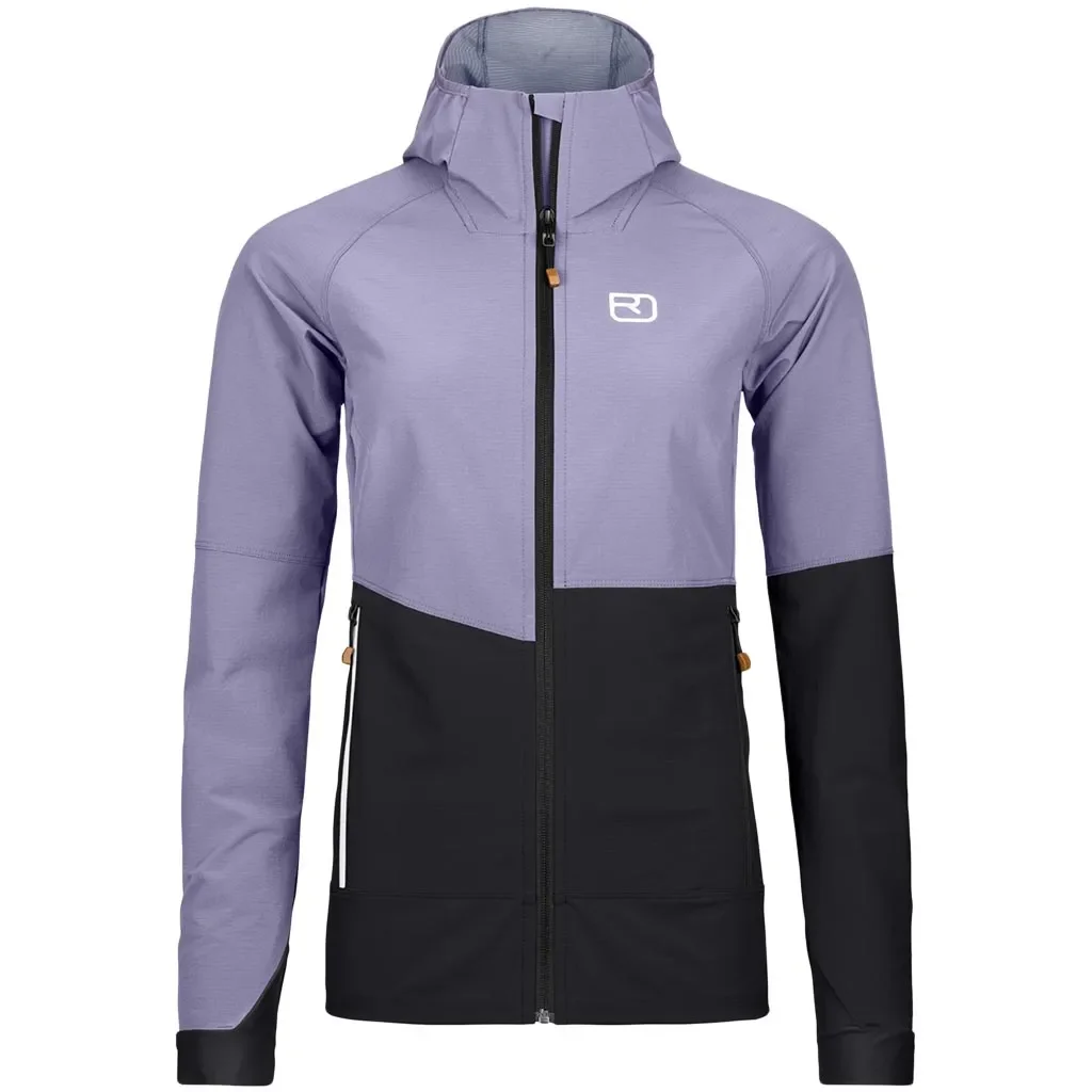 La Punta Berrino Hooded Jacket W d'Ortovox est une veste softshell légère et robuste, conçue pour les femmes pratiquant le ski de randonnée et recherchant une protection optimale lors de leurs ascensions et descentes.