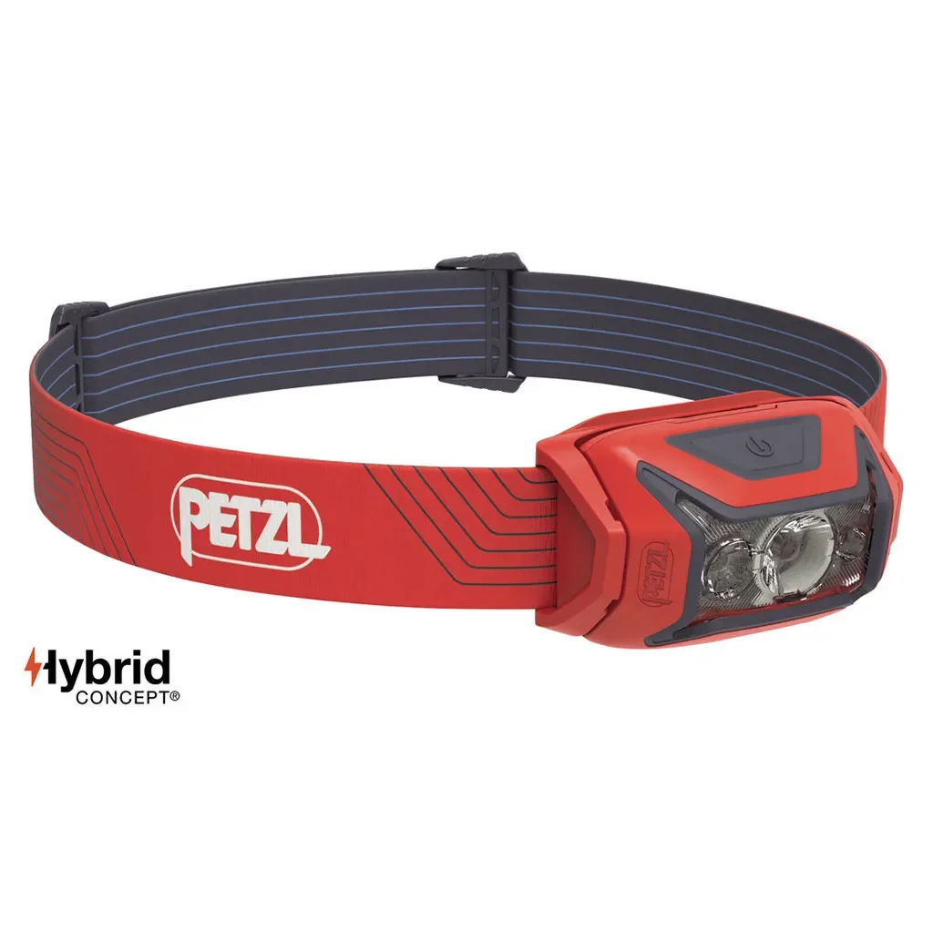 Lampe frontale Petzl Actik, facile à utiliser. Elle dispose également d'un éclairage rouge.