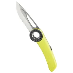 Le couteau mousquetonnable est conçu pour accompagner le grimpeur. Le profil de la lame permet de couper facilement les cordes et cordelettes. Facile à manipuler avec des gants grâce à la molette crantée, il dispose également d'un cran d'arrêt.