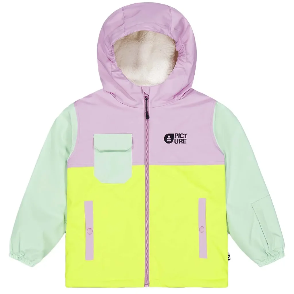 La PICTURE ORGANIC Snowy Toddler Jacket en coloris orchid silt green acid est une veste conçue pour les tout-petits, offrant performance et confort pour les premières aventures sur la neige.
