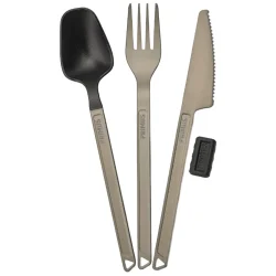 Set de couverts léger et compact en aluminium, idéal pour le camping, le trekking et les aventures outdoor.
