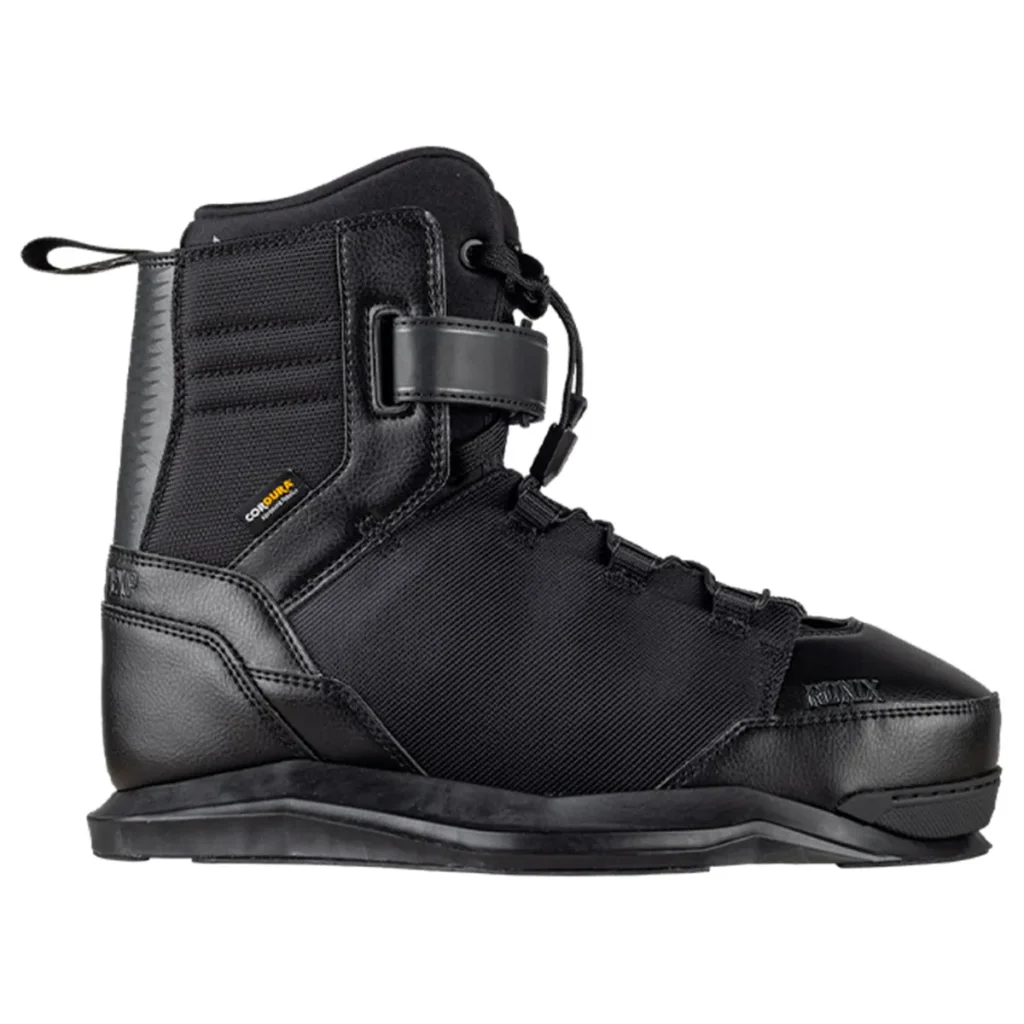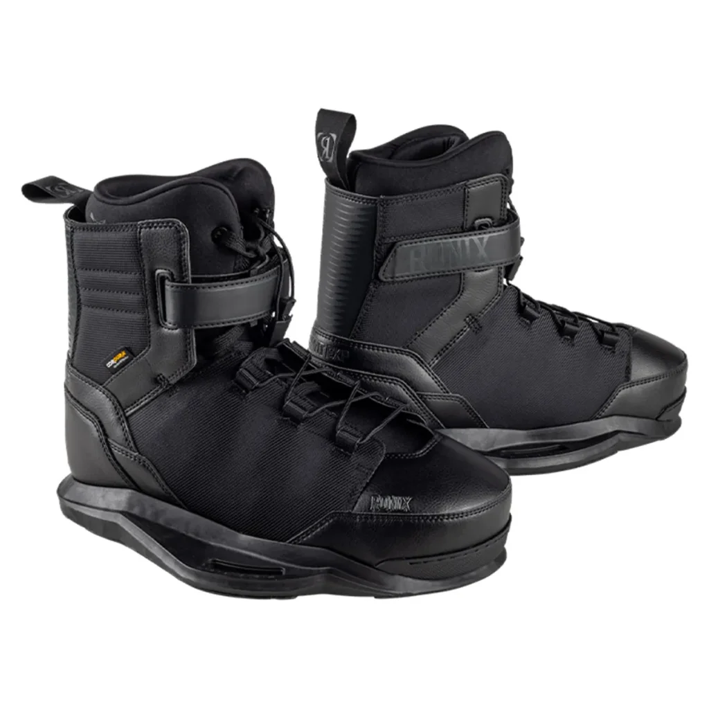 La RONIX Footprint EXP est une chausse de wakeboard à système amovible ("Walkable Liner") conçue pour les riders de park qui ne veulent plus jamais marcher pieds nus sur les cailloux ou le goudron.