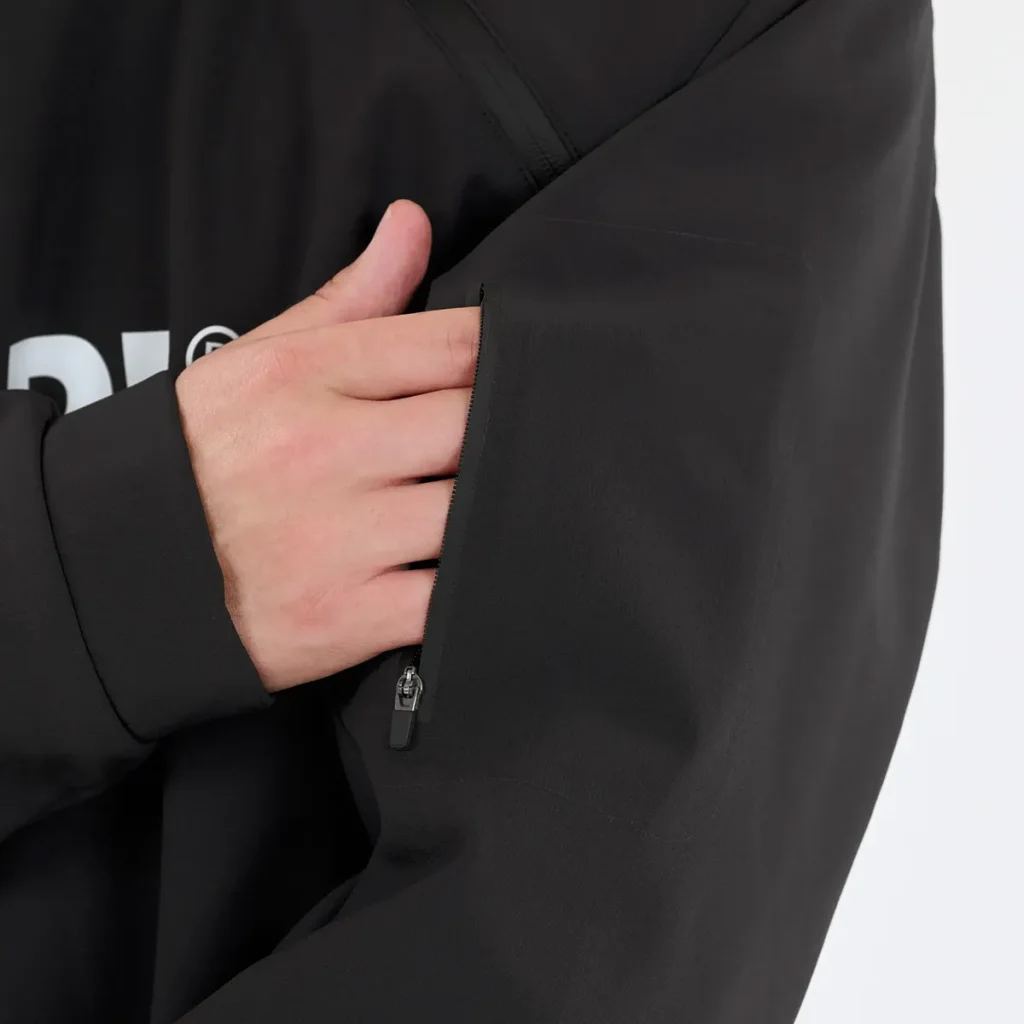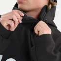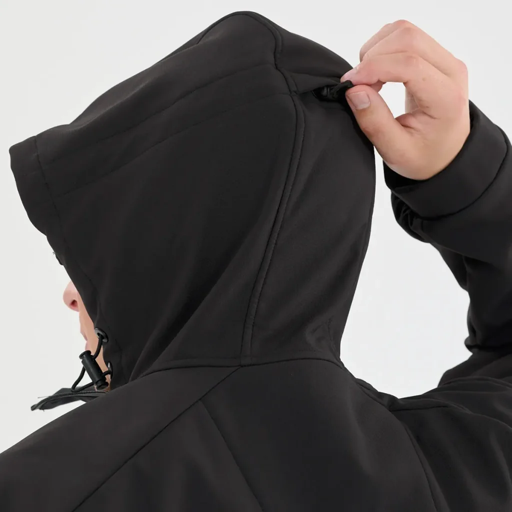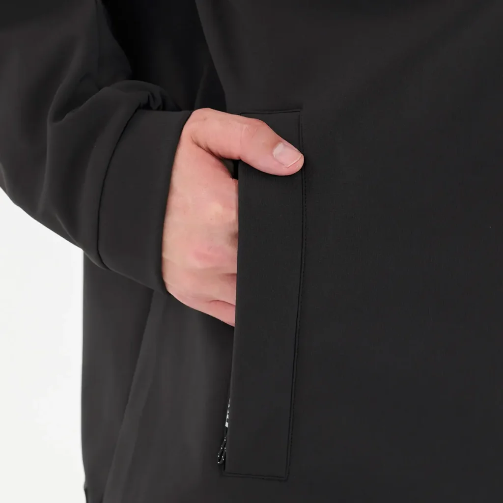 Sweat à capuche technique de type Softshell. Contrairement à une veste rigide (Hardshell), il mise sur la souplesse et le confort thermique tout en barrant la route au vent et à l'humidité légère.