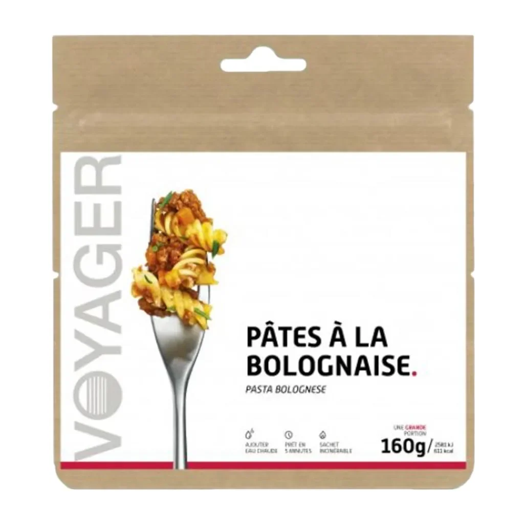 Les VOYAGER Pâtes à la Bolognaise 160 g sont le compagnon idéal pour vos sorties en plein air, alliant saveur, énergie et simplicité de préparation.