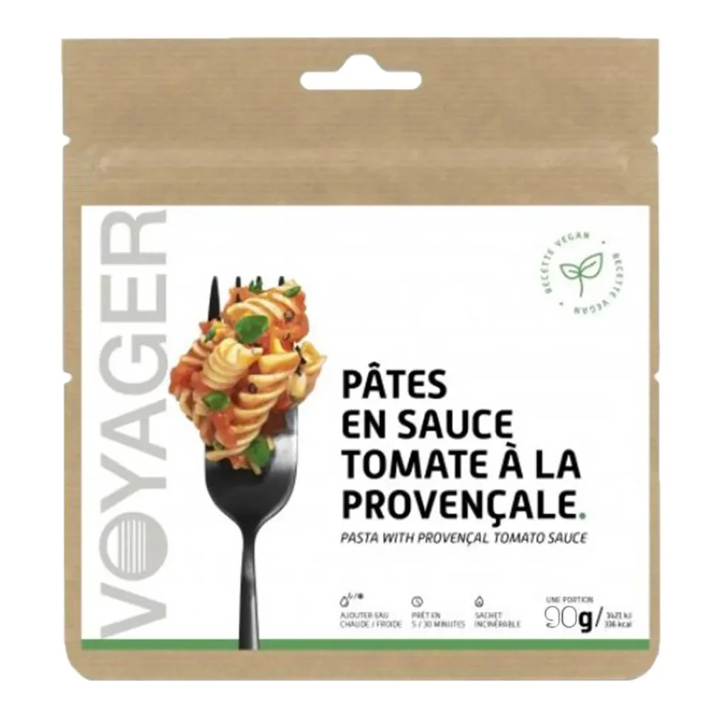 Sachet de pâtes en sauce tomate à la provençale lyophilisé de chez Voyager.
